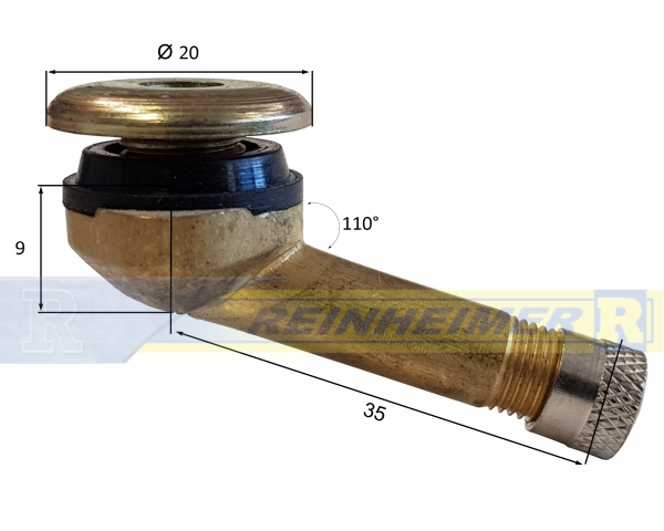 EINFACH GEBOGENES LKW FLACHBETTFELGENVENTIL FUER EIN 15.7 mm VENTILLOCH