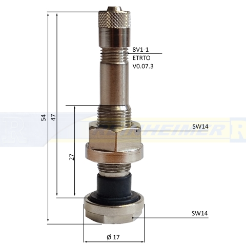 LKW STEILSCHULTERVENTIL BL-54MS-VALCOAFelgenventil aus Messing vernickelt für schlauchlose Nutzfahrzeugreifen.Länge...............: 54 mmVentilloch.........: 9.7 mmAnzugsmoment:12-15 Nm Ausführung.....: geradeFelgentyp........: Aluminiumfelge