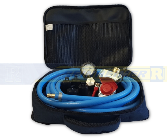 AIR-FILLFIX-RH01/Komplettset für eine schnelle Befüllung von Agrarreifen miitels Druckluft über die fahrzeuginterne Druckluftversorgung* Manometer mit Verbindungselementen und Sicherheitsventil * 5-Meter Druckluftschlauch mit Verbindungselementen (Stecknippel/Kupplung)* 4-Druckluftkupplungen mit Innengewinde VG12 (zum Aufschrauben auf die Fahrzeugventile)* 4-Kontermuttern* 1-Adapter für den Anschluss an die Fahrzeug-Druckluftversorgung* 4-Schutzkappen für die DruckluftkupplungenAlles verpackt in einem handlichen Soft-Case zum Schutz des im Fahrzeug verbleibenden Zubehörs./