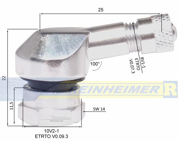 Zweirad-Aluminiumventil mit innenliegender Befestigung,
