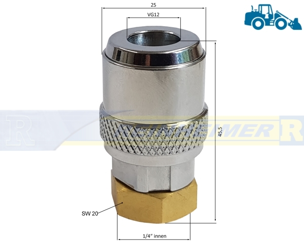 Verbindung des Steckers mit einem Druckluftschlauch ist eine Schlauchtülle mit einem Außengewinde von 1/4"