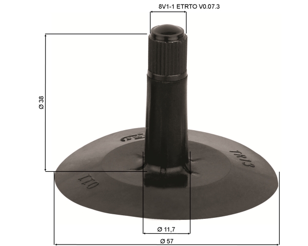 Ventil TR13/15 mit Ventilfuß zur KaltvulkanisationDas Ventil ist zum Aufvulkanisieren auf Reifen-Luftschläuche vorgesehen. Als Vulkanisationslösung
