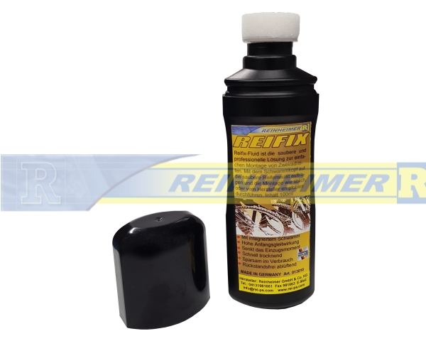 REIFIX MontagefluidHochgleitfähiges Spezialmontagemittel für Zweiradreifen in einer Flasche mit Schwammkopf.