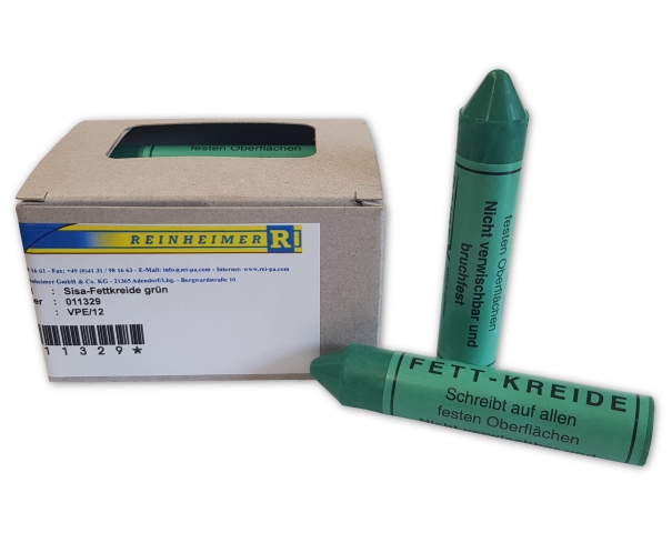 FETTKREIDE GRÜN / Inhalt 12 Stifte, D=17,5mmUnsere Fettkreiden dienen zur Kennzeichnung von Produkten und Verpackungen in voielen Bereichen,