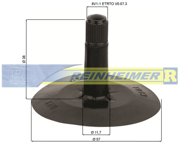 Ventil TR13 mit Ventilfuß zur WarmvulkanisationDas Ventil ist zum Aufvulkanisieren auf Reifen-Luftschläuche mittels Heizpresse vorgesehen.