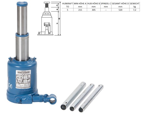 DOPPELTELESKOPHEBER 5-TonnenUnterstellheber mit zwei Kolben.