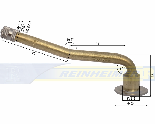 Felgenventil aus Messing, fuer NFZ-Reifen mit Schlauch.