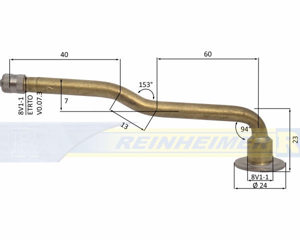 Felgenventil aus Messing vernickelt fuer schlauchlose Nutzfahrzeugreifen.