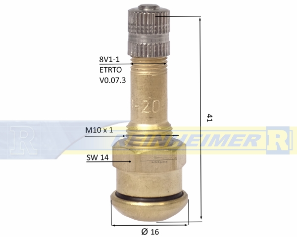 Felgenventil aus Messing für schlauchlose Nutzfahrzeugreifen.