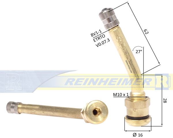 Felgenventil aus Messing für schlauchlose Nutzfahrzeugreifen.