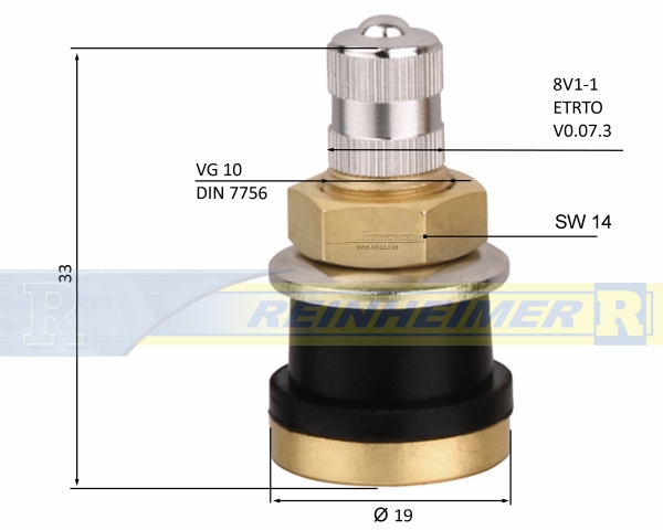 Felgenventil aus Messing für schlauchlose Nutzfahrzeugreifen.