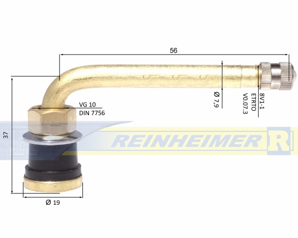 Felgenventil aus Messing für schlauchlose Nutzfahrzeugreifen.