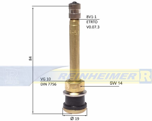 Felgenventil aus Messing für schlauchlose Nutzfahrzeugreifen.