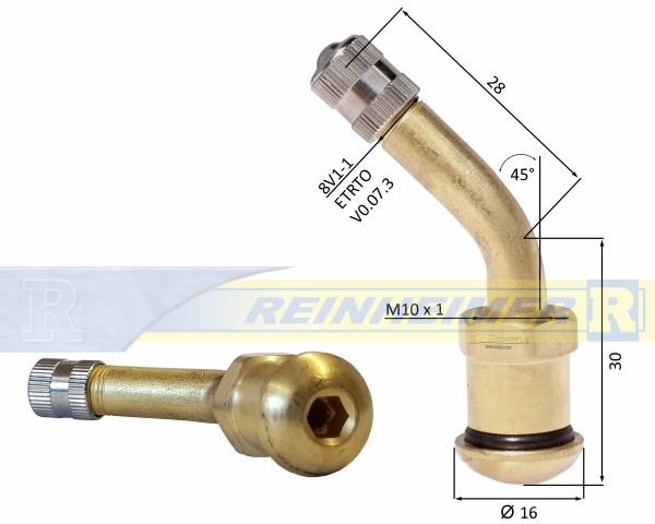 Felgenventil aus Messing für schlauchlose Nutzfahrzeugreifen.