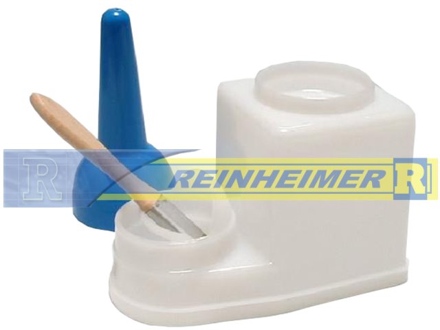 Der praktische Vorrats-Spardosierer, ausgerüstet mit einem Pinsel zum